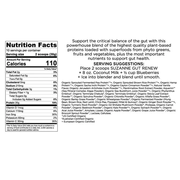 Indulge in the luxurious blend of our Chocolate & Original Value Size GUT RENEW Formula, designed to support optimal gut health with premium organic ingredients. Each serving delivers 20 grams of plant-based protein, zero grams of sugar, and only 3 grams of carbs, making it the perfect addition to your daily wellness routine. Elevate your smoothies with this powerhouse formula rich in phyto greens, fruits, and essential nutrients.